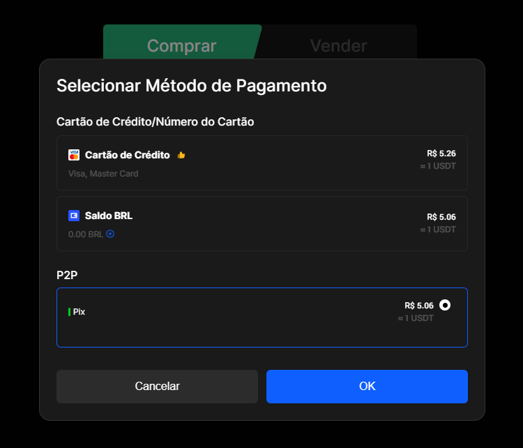 - وضع الشراء المبسط: يتيح للمستخدمين شراء البيتكوين والإيثيريوم وBNB وأصول أخرى عبر Pix في بضع نقرات فقط، دون الحاجة لفهم دفاتر الطلبات.