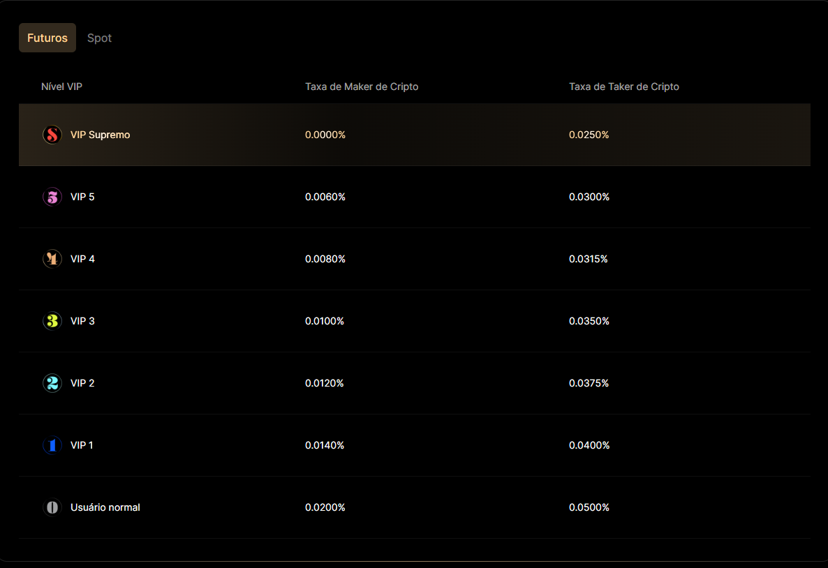رسوم التداول الفوري هي 0.1% للمستفيدين و0.1% للصانعين، مع خصومات تدريجية مع زيادة الحجم الشهري. تتميز المنصة أيضاً ببرنامج VIP، حيث يمكن تقليل الرسوم إلى 0% للصانع و0.02% للمستفيد.