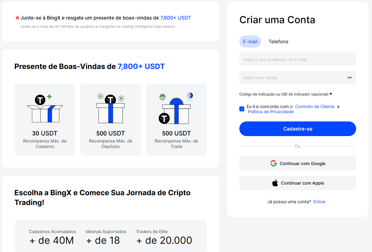 1. زيارة الموقع الرسمي: https://bingx.com/pt-br
