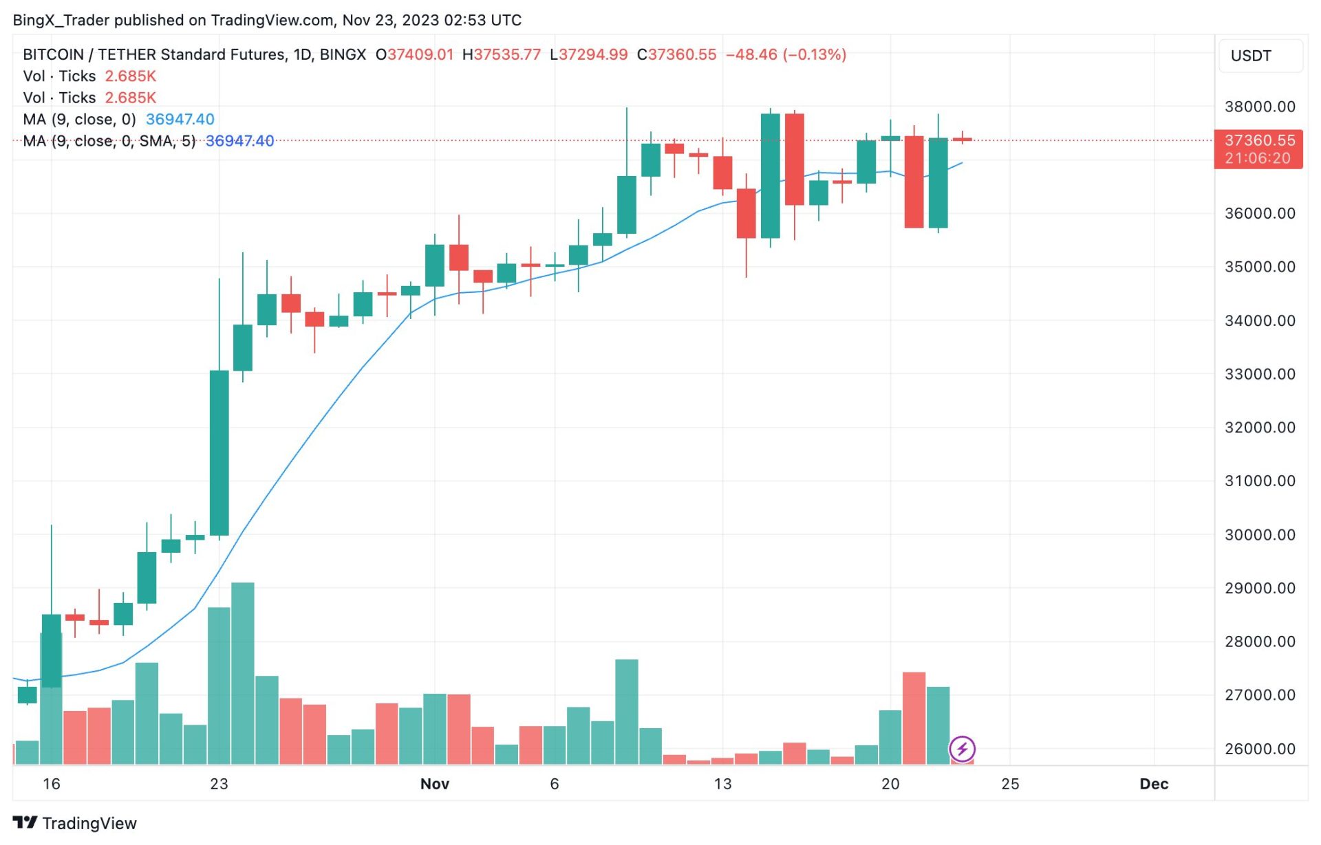 Bitcoin đang phục hồi từ đợt điều chỉnh ngày 21/11 lên 35.651 USD và đạt mức cao nhất trong ngày hôm nay là 37.431 USD. Sự tăng giá này diễn ra sau khi giá Bitcoin tăng 3%, ngay khi các nhà giao dịch tiếp nhận thông tin về thỏa thuận giữa Binance và Bộ Tư pháp Hoa Kỳ (DOJ). Thỏa thuận này đã khơi dậy niềm tin rằng quỹ giao dịch BTC giao ngay (ETF) sẽ sớm được phê duyệt và điều này sẽ mang lại dòng vốn đáng kể cho Bitcoin, từ đó đẩy giá trên thị trường tiền điện tử lên cao hơn. Sau đó, thị trường bắt đầu nhận thấy rằng sàn giao dịch Binance không xảy ra tình trạng dòng vốn ra ồ ạt như FTX khi cuộc khủng hoảng thanh khoản lần đầu tiên được công khai. Mức hỗ trợ là 36.900 USD và mức kháng cự là 37.900 USD.