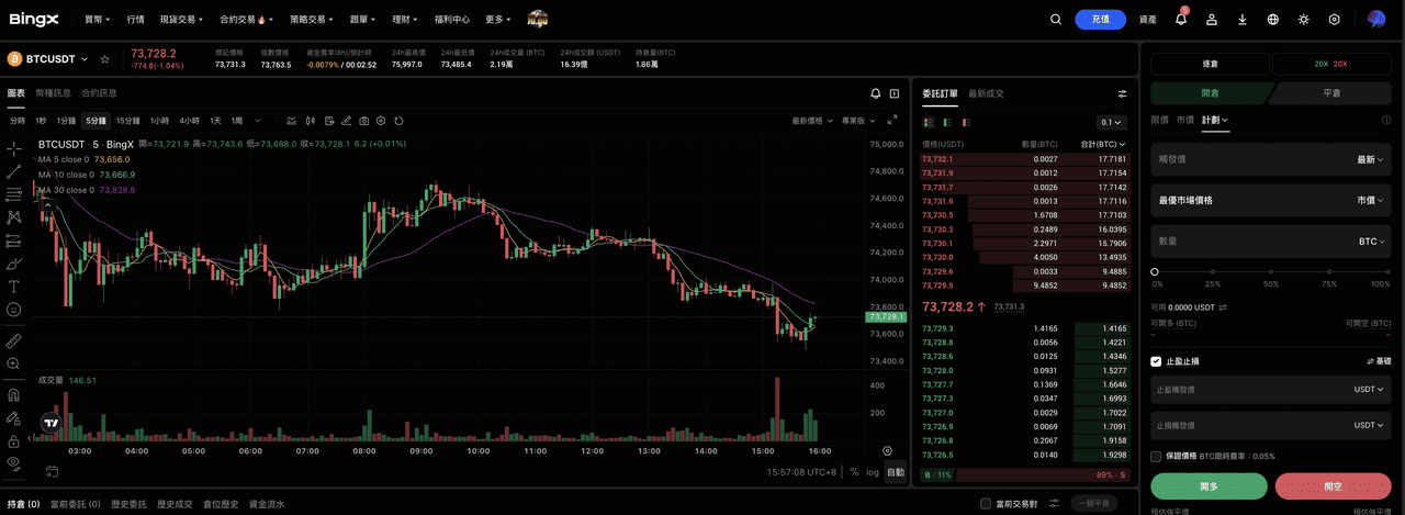 Für taiwanische BTC-Daytrader ist der Kernstandard für die Plattformauswahl „ob Strategien kontinuierlich und präzise ausgeführt werden können", nicht nur einzelne Gebührenzahlen. BingX bietet vollständige traditionelle chinesische Benutzeroberflächen, Futures-Orders, Stop-Loss-Einstellungen und Kontoverwaltung werden vollständig in der Muttersprache durchgeführt, was unnötige Kosten durch Bedienungsfehler bei schnellen Marktbewegungen effektiv reduziert; Futures haben 0,02% Maker-Gebühren und 0,05% Taker-Gebühren, gehören zu den niedrigsten Gebühren unter Mainstream-Daytrading-Plattformen, gelten ohne hohe Handelsvolumen-Schwellen, sodass auch normale Daytrader von Anfang an wettbewerbsfähige Gebühren genießen können; TradingView-Integration und BingX AI-Marktanalyse ermöglichen technische Bewertungen und Orders auf derselben Benutzeroberfläche, was Entscheidungsreibung beim Daytrading reduziert.