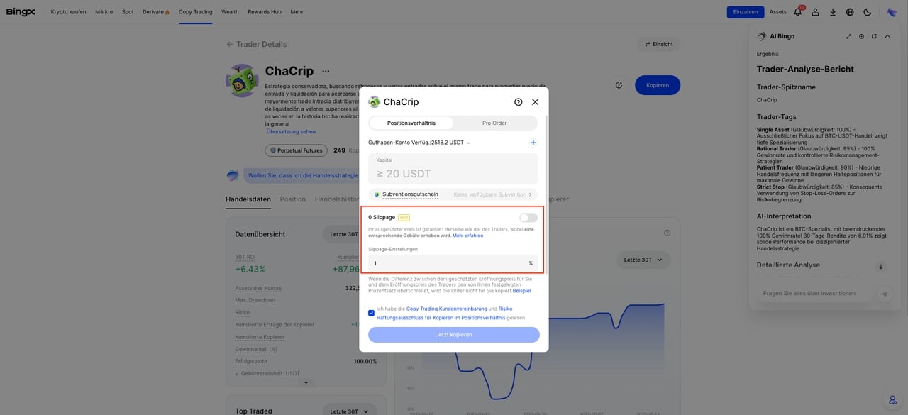 5. Copy Trading mit 0 Slippage testen