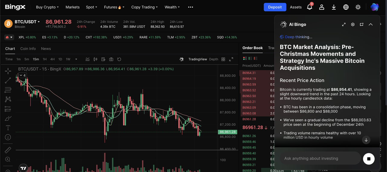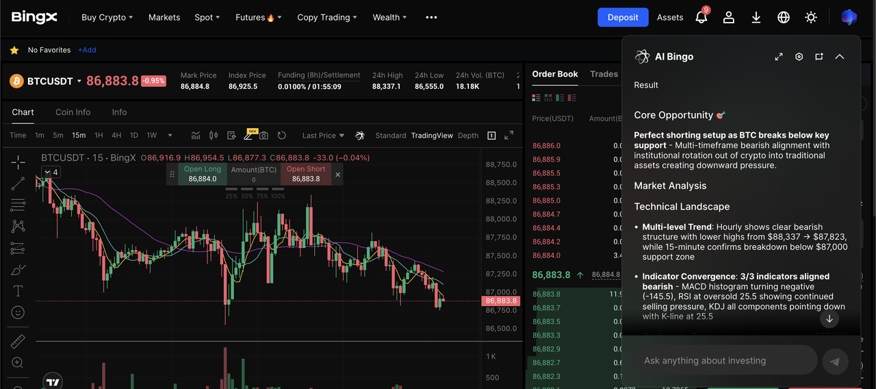 • BingX AI-powered insights: Use AI-driven market analysis, sentiment indicators, and risk tools to make more informed decisions.