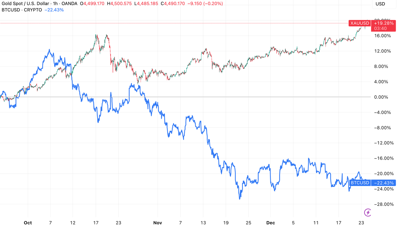 Gold vs. Bitcoin market performance in Q4 2025 | Source: TradingView