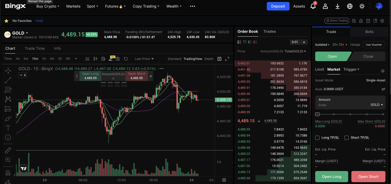 manage risk, and execute strategies efficiently. Whether your goal is long-term holding, hedging, or short-term trading, BingX allows you to access digital and traditional stores of value side by side, with real-time data, deep liquidity, and flexible trading options.
