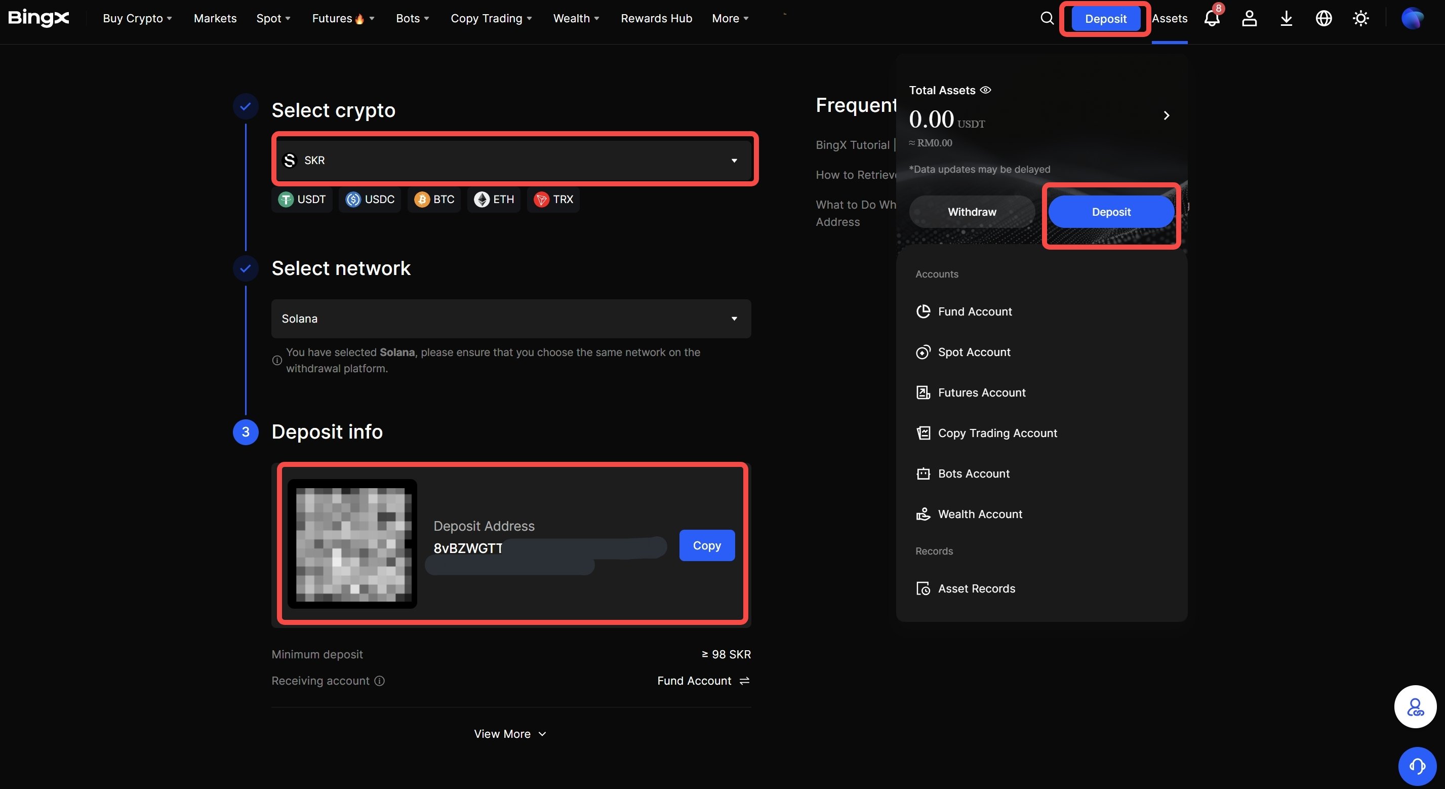 • Ensure your SKR tokens are credited to your BingX Spot wallet