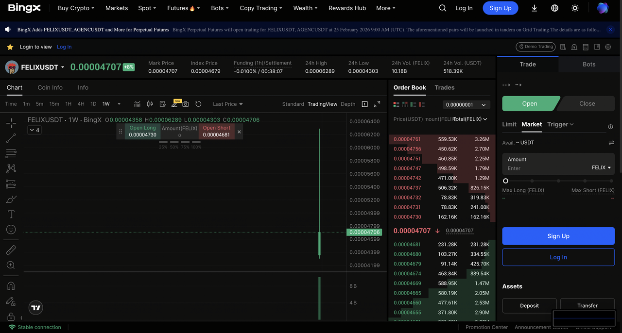 BingX, a user-friendly centralized exchange, supports FELIX trading with pairs like FELIX-USDT and offers tools for efficient purchases. Amid the hype, the token is already listed on major centralized exchanges, including BingX, where users can trade FELIX/USDT perpetuals in the futures market. Follow these steps to trade FELIX securely: