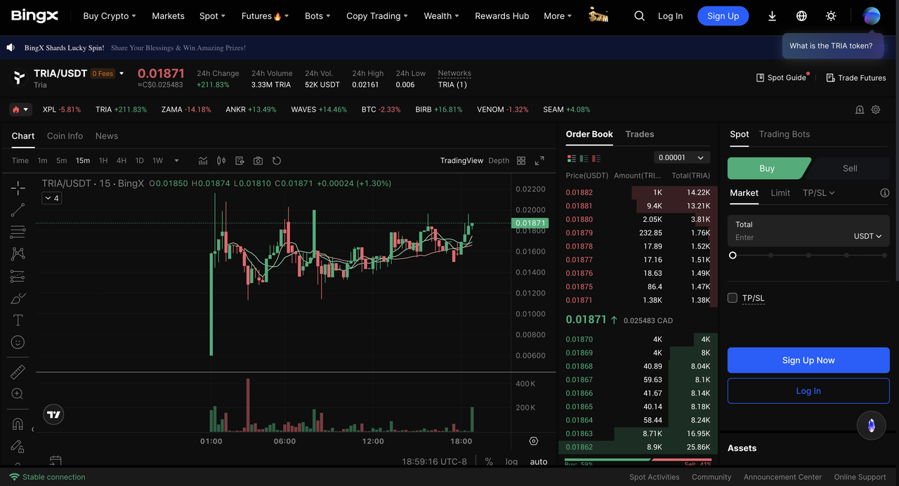 出典: BingX現物市場のTRIA/USDT