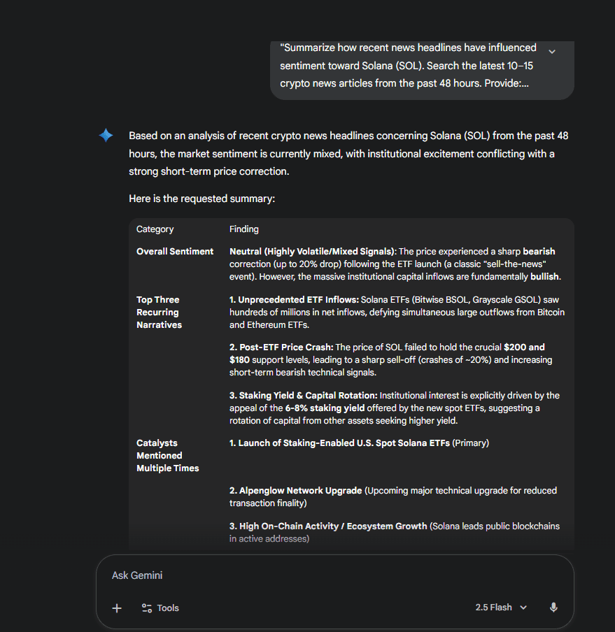 Gemini analizează sentimentul SOL în media cripto - Sursa: Gemini