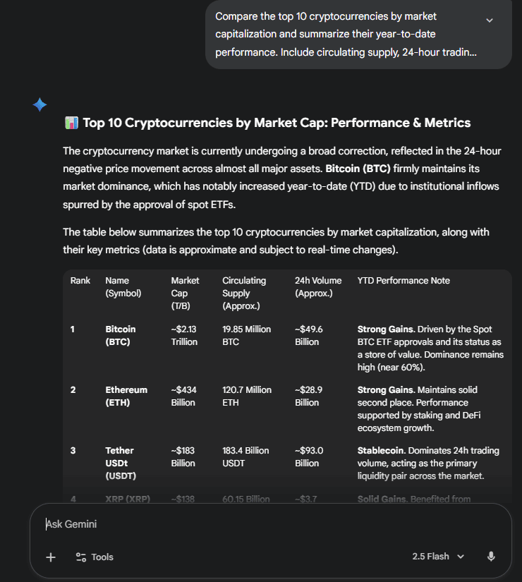 Folosind instrumente AI precum Gemini sau ChatGPT, traderii pot compara modul în care activele individuale performează în raport cu piața mai largă, pot identifica ce monede câștigă sau pierd cotă și pot detecta semne timpurii de rotație sectorială, cum ar fi capitalul care se mută de la Layer-1 la tokenuri DeFi sau proiecte legate de AI.