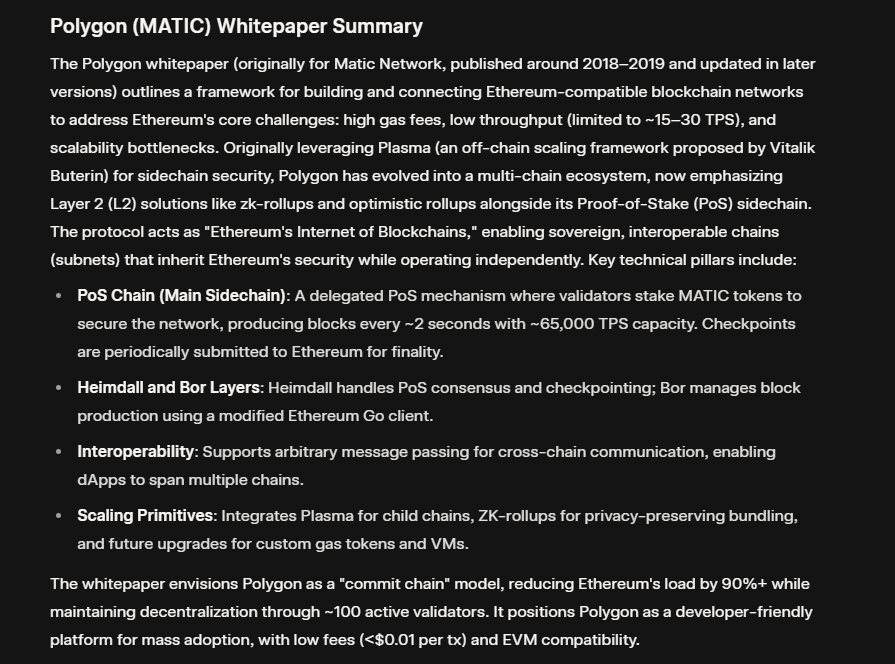 Rezumatul Whitepaper-ului Polygon (MATIC) - Sursa: Grok