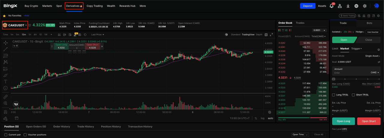 1. Знайдіть ринок: Відкрийте BingX та знайдіть CAKE/USDT у розділі