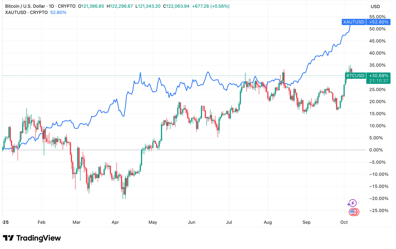 Динаміка золота проти біткоїна з початку 2025 року | Джерело: TradingView