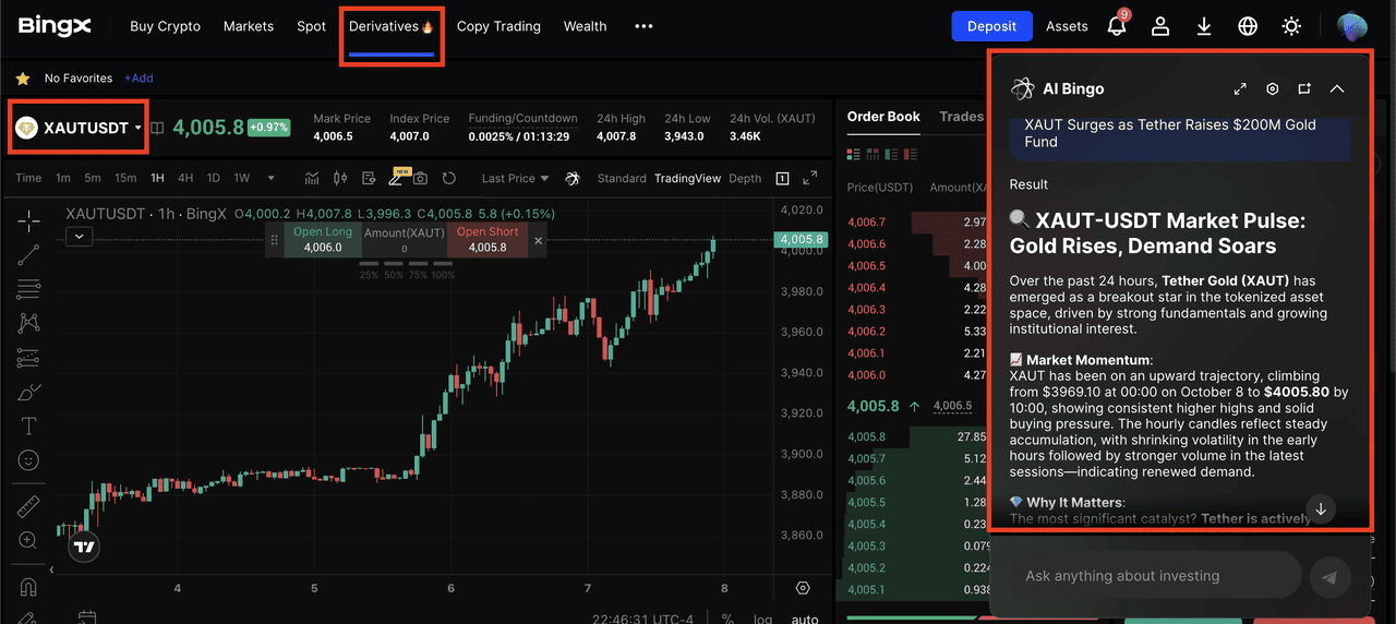 XAUT/USDT на ф'ючерсному ринку, за підтримки AI Bingo