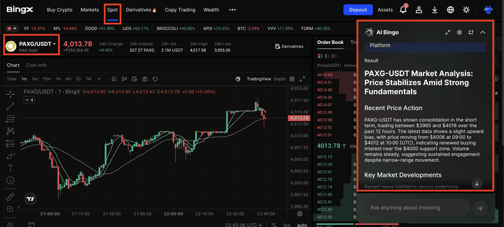 Торгова пара PAXG/USDT на спотовому ринку, за підтримки BingX AI
