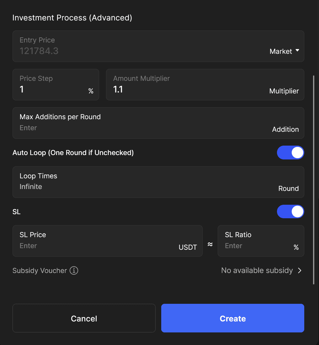 • Конфігуроване управління ризиками: Трейдери можуть налаштовувати цілі прибутку, цінові кроки та рівні кредитного плеча відповідно до своєї стратегії та розміру інвестицій.