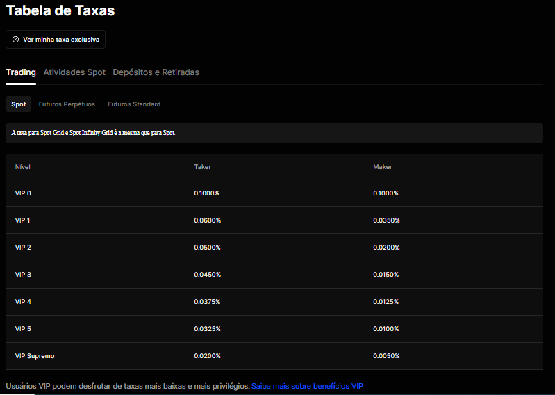 Đối với hợp đồng tương lai và vĩnh viễn, phí bắt đầu từ 0.02% cho lệnh maker và taker, đạt 0% cho maker ở bậc VIP tối thượng—một trong những cơ cấu cạnh tranh nhất trong ngành.
