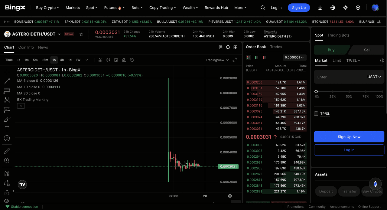 ASTEROIDETH/USDT trên Thị Trường Spot BingX