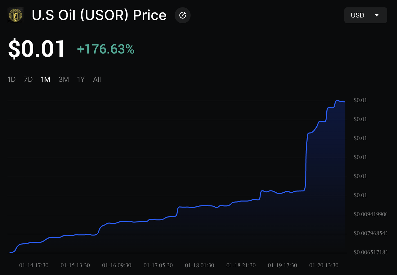 從市場角度來看,USOR顯示高短期波動性,截至2026年1月市值和FDV約為1800萬美元,24小時交易量超過700萬美元,完全流通供應量為10億代幣,包括過去7天近200%的漲幅,突顯其投機性、動能驅動的性質而非基準石油跟蹤。