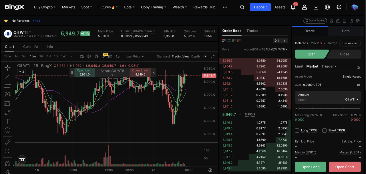 綜合這些功能使BingX TradFi石油永續合約成為加密交易者獲得直接原油敞口、管理宏觀風險和使用加密貨幣交易全球能源市場的實用方式,無需實物交割、經紀賬戶或傳統商品平台。