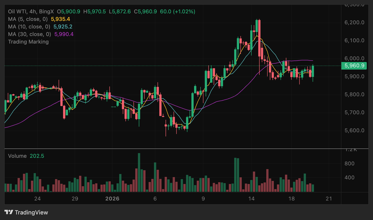原油在2026年1月表現波動 | 資料來源:BingX的WTI原油價格圖表