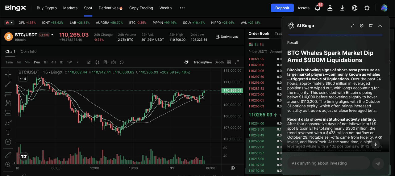用戶也可以探索BingX AI,這是平台的內建助手,可在BingX應用程式內直接提供實時市場洞察和策略建議。