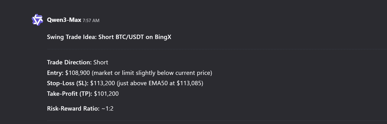 Qwen 3 Max回應了結構化的做空交易計劃: